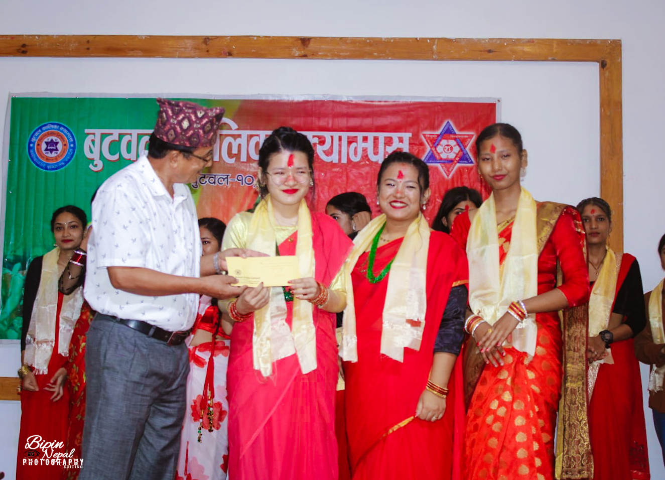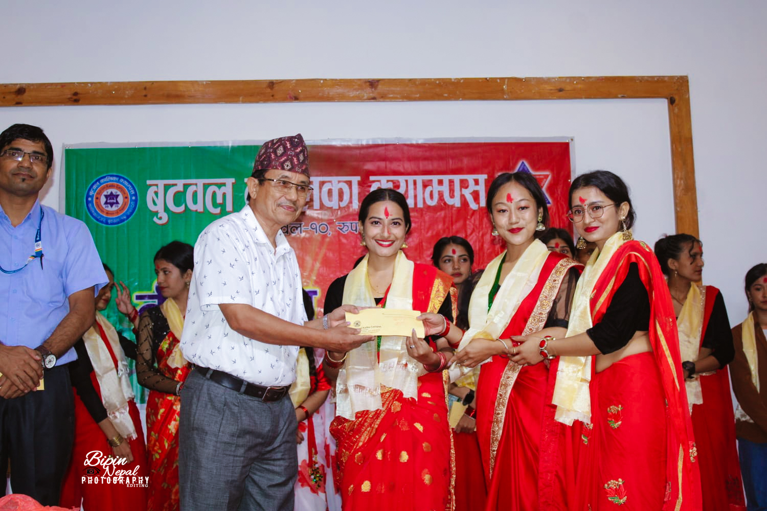 बुटवल उपमहानगरपालिका वडा नं. १० रामनगरमा रहेको बुटवल कालिका क्याम्पसमा तिज गित प्रतियोगिता कार्यक्रम सम्पन्न भएको छ ।विभिन्न संकायमा अध्ययन गर्ने विद्यार्थीहरु बिच भएको प्रतियोगितामा खुल्ला तिज गितमा नित्य प्रस्तुत गरेका थिए ।