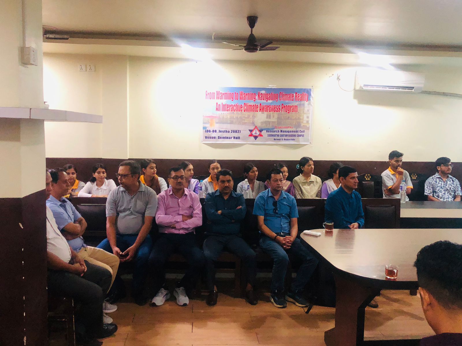जलवायु परिवर्तनको चुनौती विश्वव्यापी संकटको रूपमा गहिरिँदै गएको वर्तमान सन्दर्भमा सिद्धार्थ गौतमबुद्ध क्याम्पस बुटवलले वातावरणीय शिक्षा र चेतनाको अभिवृद्धिका लागि तीन दिने विशेष सचेतना कार्यक्रम